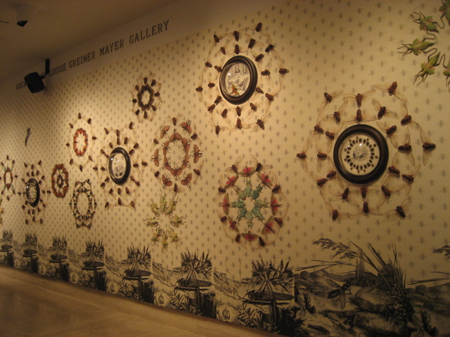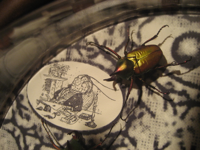 Children's literature is populated with wonderful six-legged characters like the insect companions in James and the Giant Peach and the fabulously glamorous cockroach in La Cuchuracha Martina. In the Victorian era, adults and children were introduced to the natural world through educational publications that anthropomorphized insects to make them more appealing. Voracious collecting of plants and wildlife was extremely popular, and for the insatiable Victorian nothing was sacrosanct; there was enormous prestige granted to a large collection with the finest, most unusual specimens. While men of science did fieldwork, the wealthy sponsored expeditions and accumulated the bounty. Their specimens were often presented in 'cabinets of curiosity' in arrangements that had little to do with genus but everything with aesthetic presentation. This installation channels that quirky spirit of collection and display, which embraces both science and fantasy.