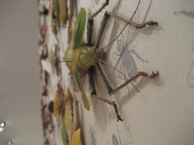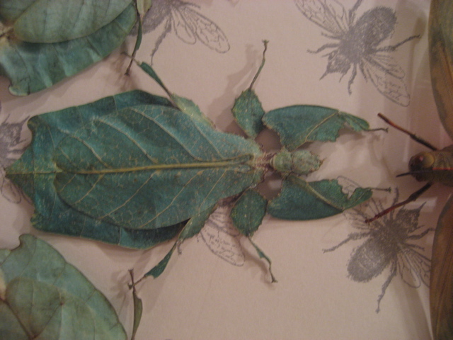 Insects: Pompoina imperatorial (clear-wing cicada, Malaysia), Heteropteryx dilatata (thorny stick, Malaysia), Sanaea intermedia (katydid, Thailand), Ayuthia spectabilis (white cicada, Thailand), Phyllium giganteum (moving leaf, Malaysia), Lophacris cristata (pink-winged grasshopper, Peru), Tosena splendida (blue-winged cicada, Thailand), Phymateus Saxosus (grasshopper, Madagascar), Tropidacris Dux (orange-winged grasshopper, Peru), Titanacris Albipes (purple-winged grasshopper, French Guyana), Angamiana floridula (brown-winged cicada, Thailand), Tosena Albata (black-winged cicada, Thailand), and other assorted insects.